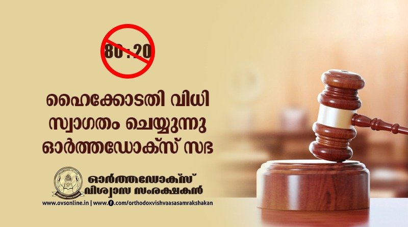ഹൈക്കോടതി വിധി സ്വാഗതം ചെയ്യുന്നു ഓര്ത്തഡോക്സ് സഭ
